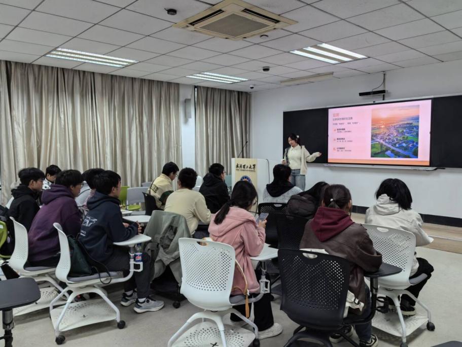 随后进入"图景描绘"环节,团支书通过浙江"千万工程"、湖北"湾组治理"等典型案例,展示宜居宜业和美乡村的蝶变之路,并设置小组讨论:青年如何在乡村振兴中找准发力点。同学们结合专业踊跃发言,现场气氛热烈。