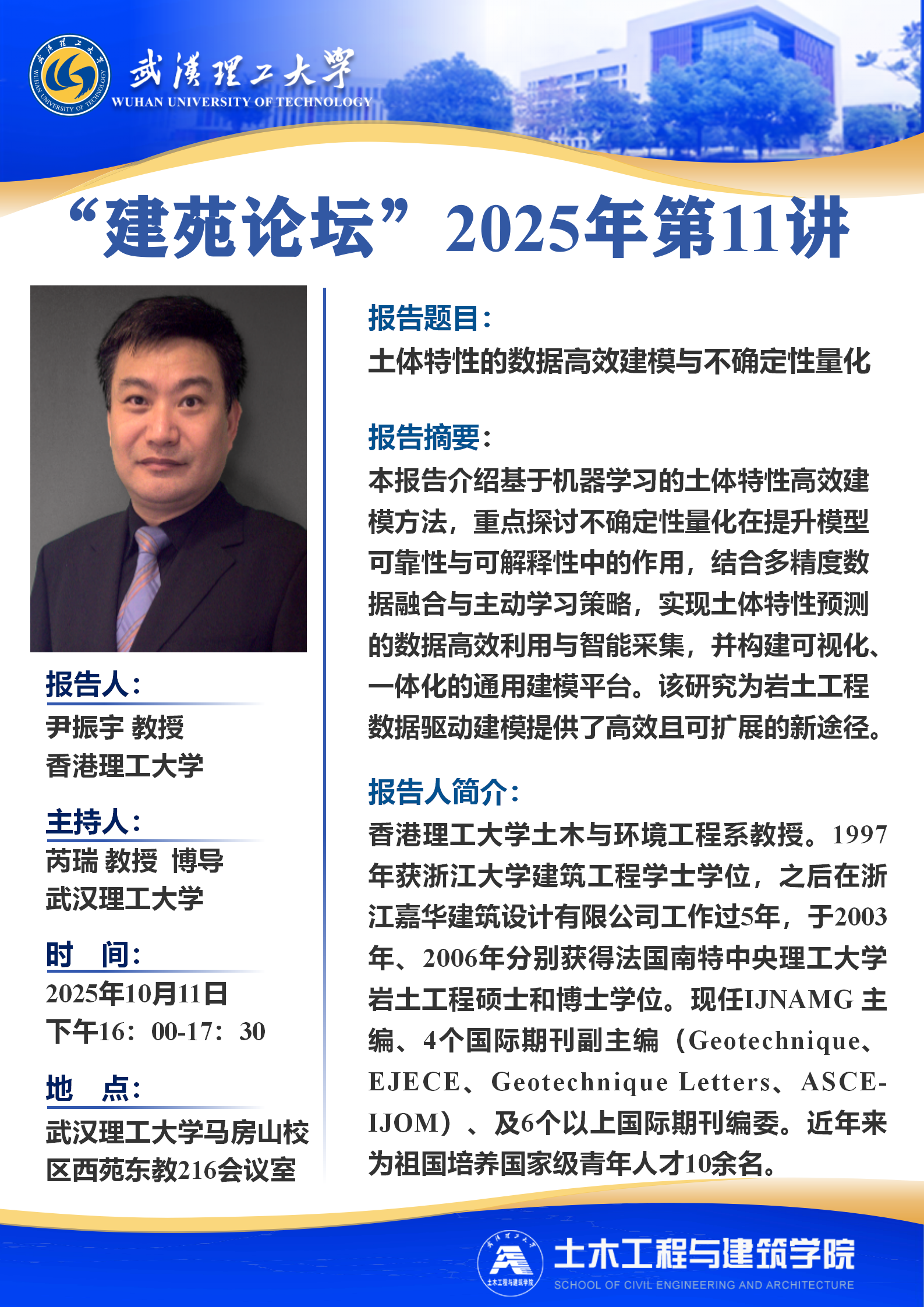 “建苑论坛”2025第11讲 主题:土体特性的数据高效建模与不确定性量化
