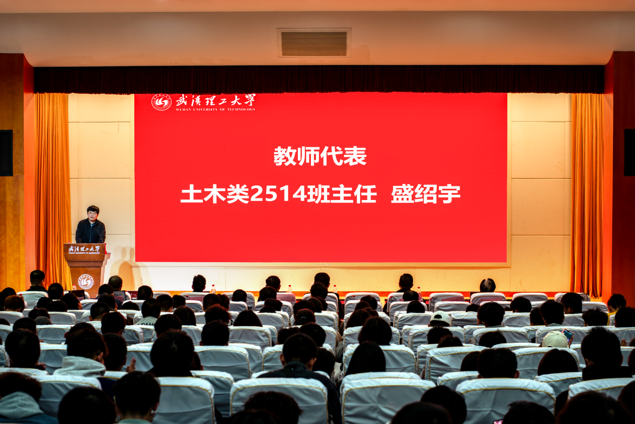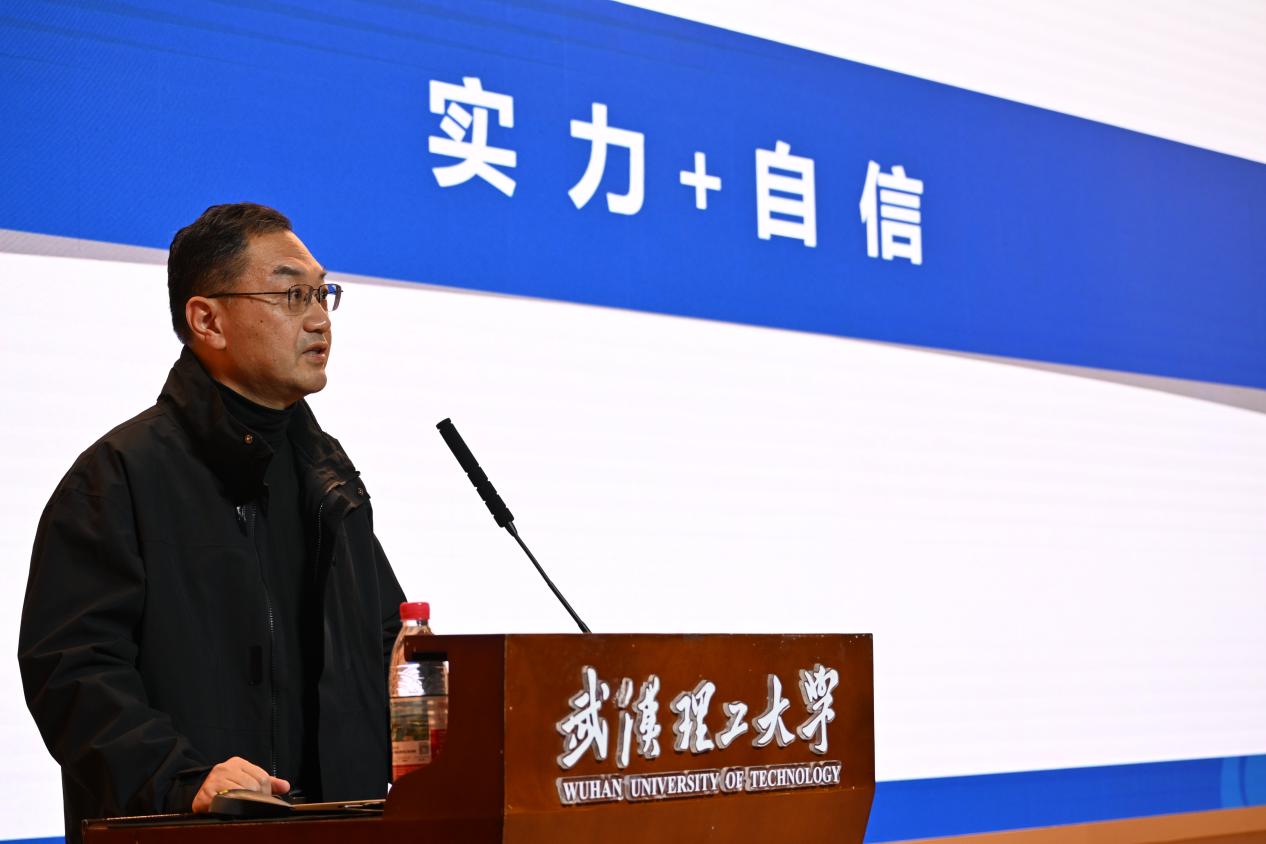 会议在庄严的国歌声中拉开帷幕。院长吴斌教授首先致辞,他代表学院向全体新生的到来表示热烈欢迎,并介绍了学校作为教育部直属重点大学的深厚底蕴与“双一流”建设成效,以及学院在学科建设、专业设置和人才培养方面的扎实基础。吴院长勉励同学们珍惜大学时光,夯实专业基础,勇于探索创新,在武汉理工这片沃土上筑梦启航、携手共创未来。